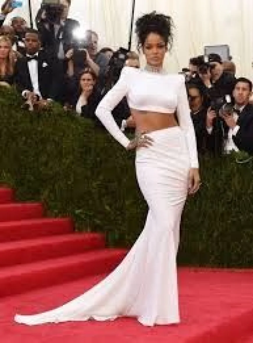 In 2014, Rihanna showed up in a sleek white two-piece outfit from Stella McCartney. The outfit was one that was modern and confident: a long skirt with a crop top.This look felt notable because it was sleek but impactful. Rihanna showed she didn't always need an overtly theatrical gown to command the red carpet. It was her confidence, stance and stylisme that made the outfit impressionistique. The look showed off her knack for honoring classic elegance while also embracing the modern fashion zeitgeist.
